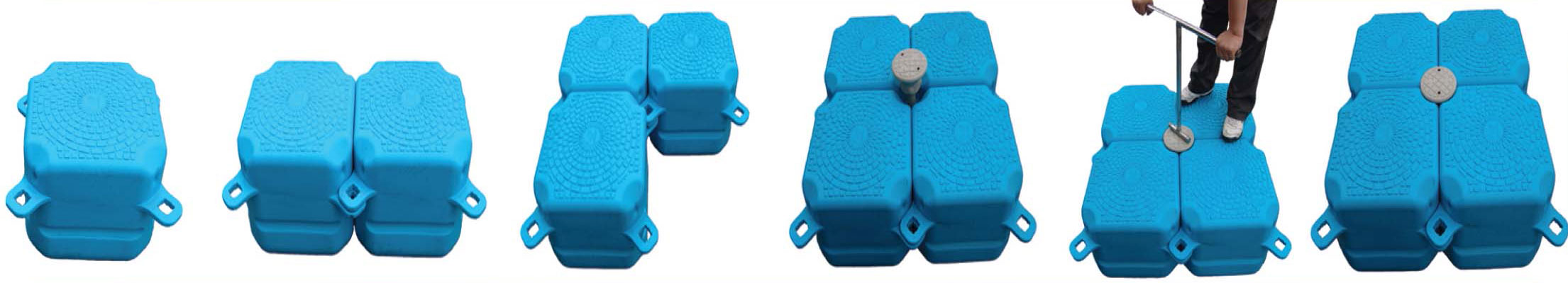 Mudah dirakit, kubus modular, berbahan dasar plastik (HDPE) tahan lama yang mudah dibongkar pasang. (Hak patent No. 10-0804052 untuk sistem apung yang di baut ke rangka di atasnya).